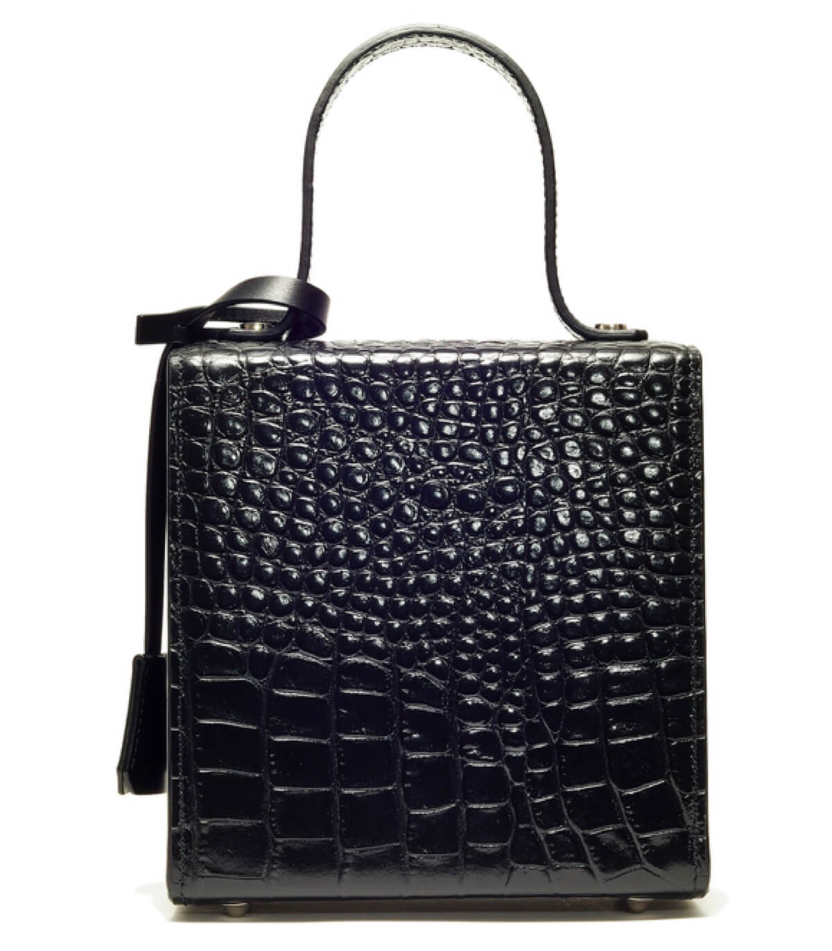 EXTERIOR : 100% full-grain calfskin leather. Hand-embossed calfskin with a crocodile pattern, giving it a glossy and rigid appearance. Smooth and supple Box Calf leather. Silver-tone clasp and metal components, made of palladium-plated brass and zamak, treated with a cataphoresis technique, making them highly resistant to oxidation and wear over time. To close the bag, press and hold the button, push the flap into the closure, and then release. Hand-embroidered with metallic threads, very rigid and resistant, treated against UV rays and wear. A shoulder strap is included in the price of the bag ; choose between a removable and adjustable Box Calf leather strap with palladium-plated brass and zamak metal components OR a leather strap with a removable, non-adjustable palladium-plated brass chain. Both can be added ; the price varies accordingly. Box Calf leather key ring with embossed logo