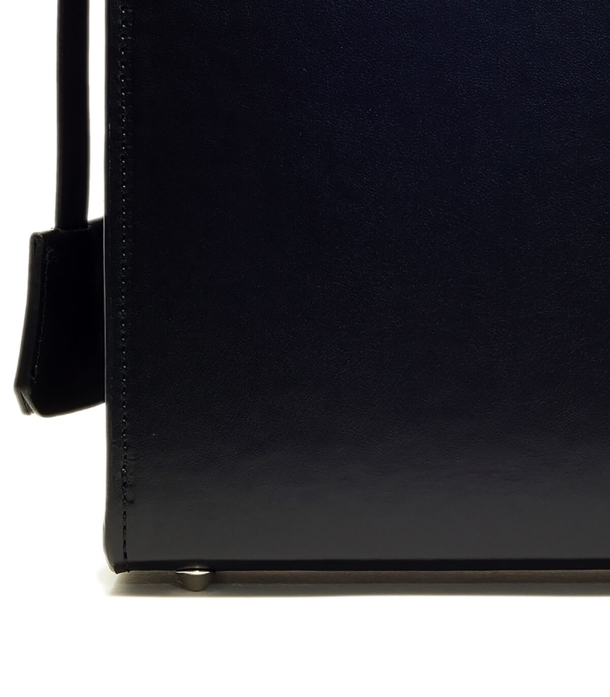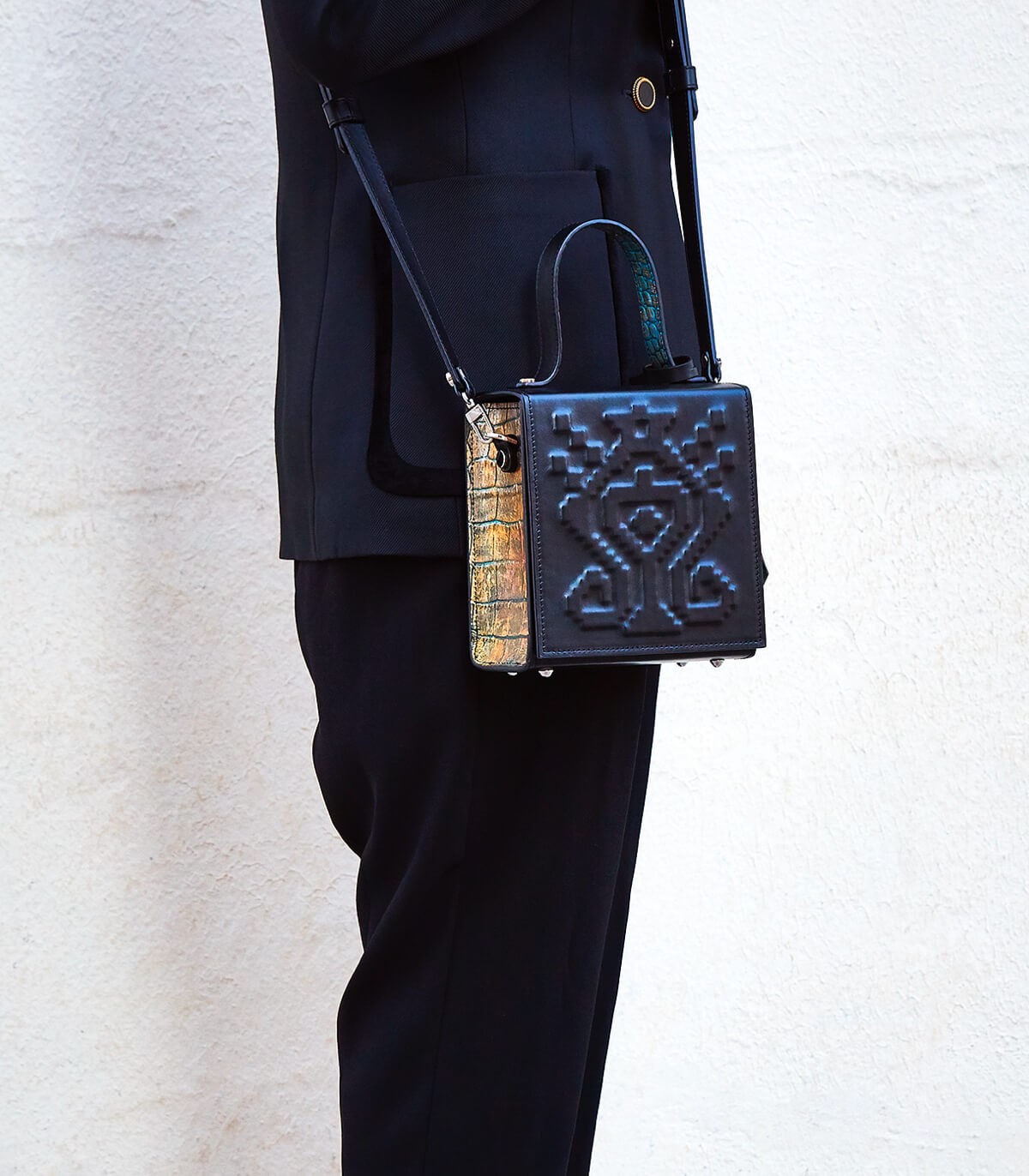 EXTERIOR : 100% full-grain calfskin leather. Smooth and supple black Box Calf leather. Rigid calfskin leather with hand-embossed crocodile pattern, embellished using an authentic, artistic, and artisanal technique developed by the brand, then treated against UV rays and wear. Silver-colored metal components in brass and zamak coated with palladium and then treated with the cataphoresis technique, making them highly resistant to oxidation and wear over time. A shoulder strap is included in the price of the bag. Choose between the Box Calf leather shoulder strap (removable and adjustable) with its palladium-plated brass and zamak metal components OR the leather shoulder strap with its non-adjustable palladium-plated brass chain. It is possible to add both ; the price varies depending on the choice. Box Calf leather key ring with embossed logo