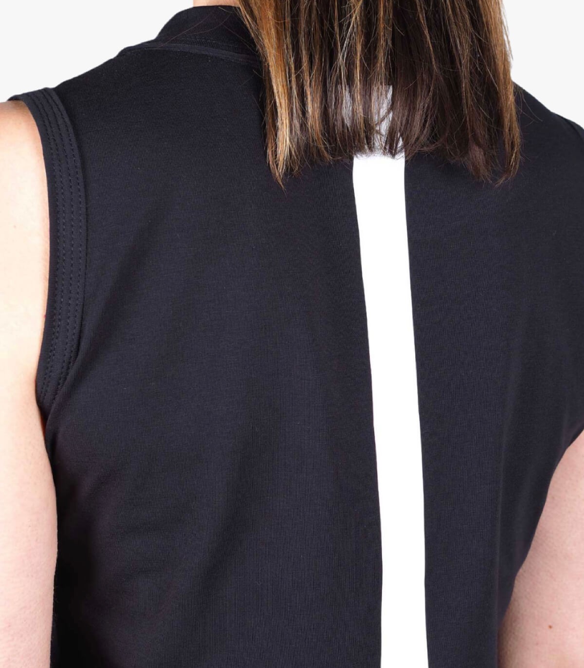 Information : MIRROR tank dress. This is a floor length sleeveless dress. Round neck, slim fit and side open slit. It features a vinyl print in the front and back. Stitching details in arm hemms. This garment is made out of mediumweight GOTS certified organic cotton jersey