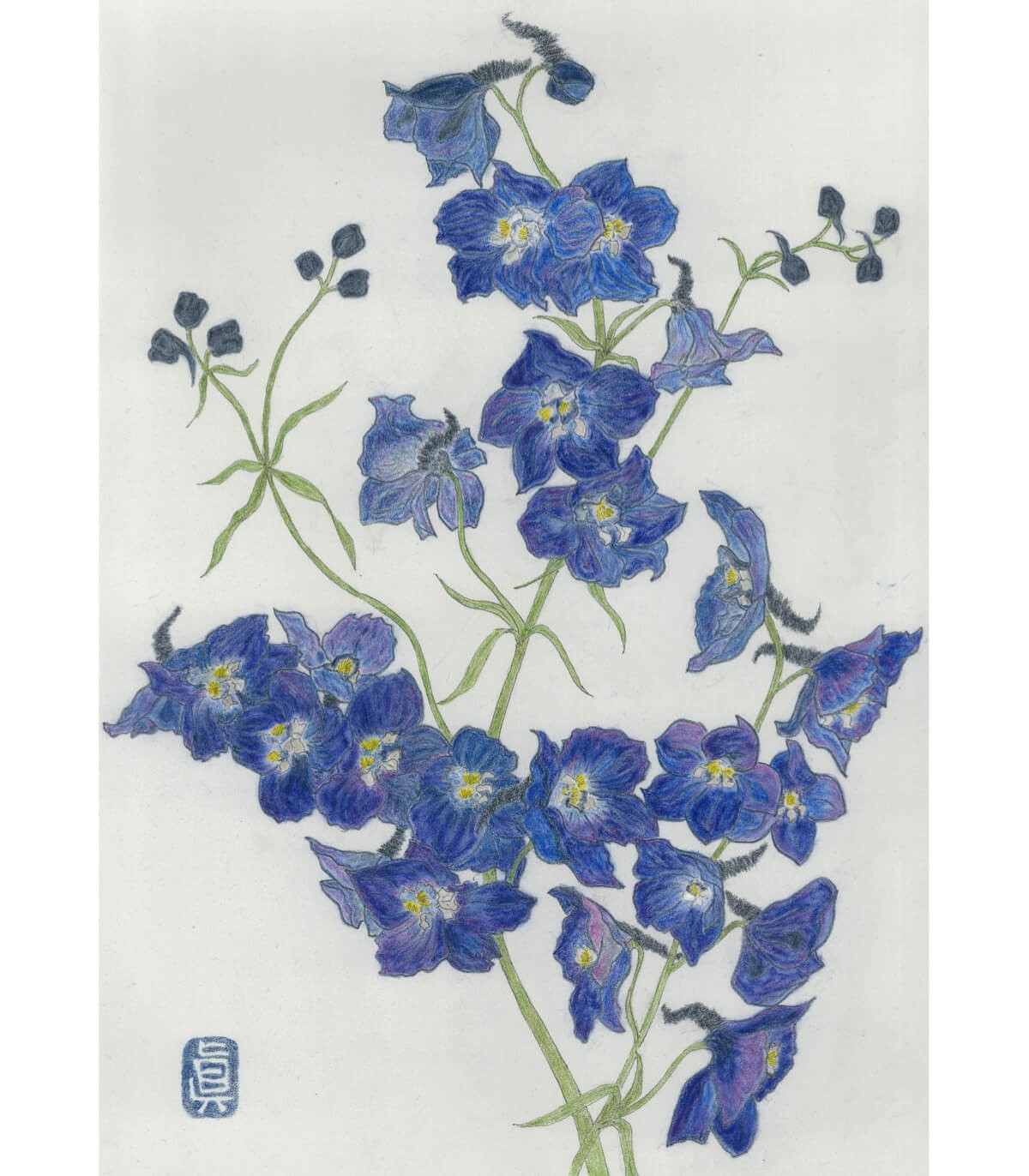 Dessin Botanique - Delphinium Bleu 2025