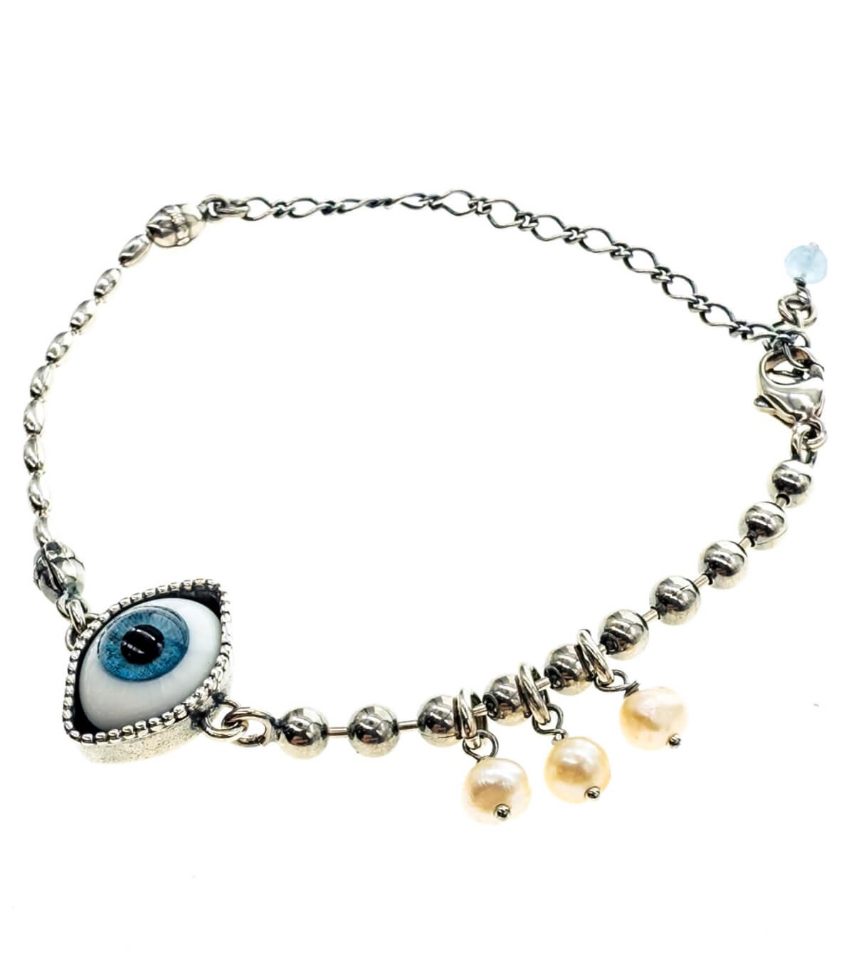 Information : bracelet Eye love you, œil bleu, longueur ajustable