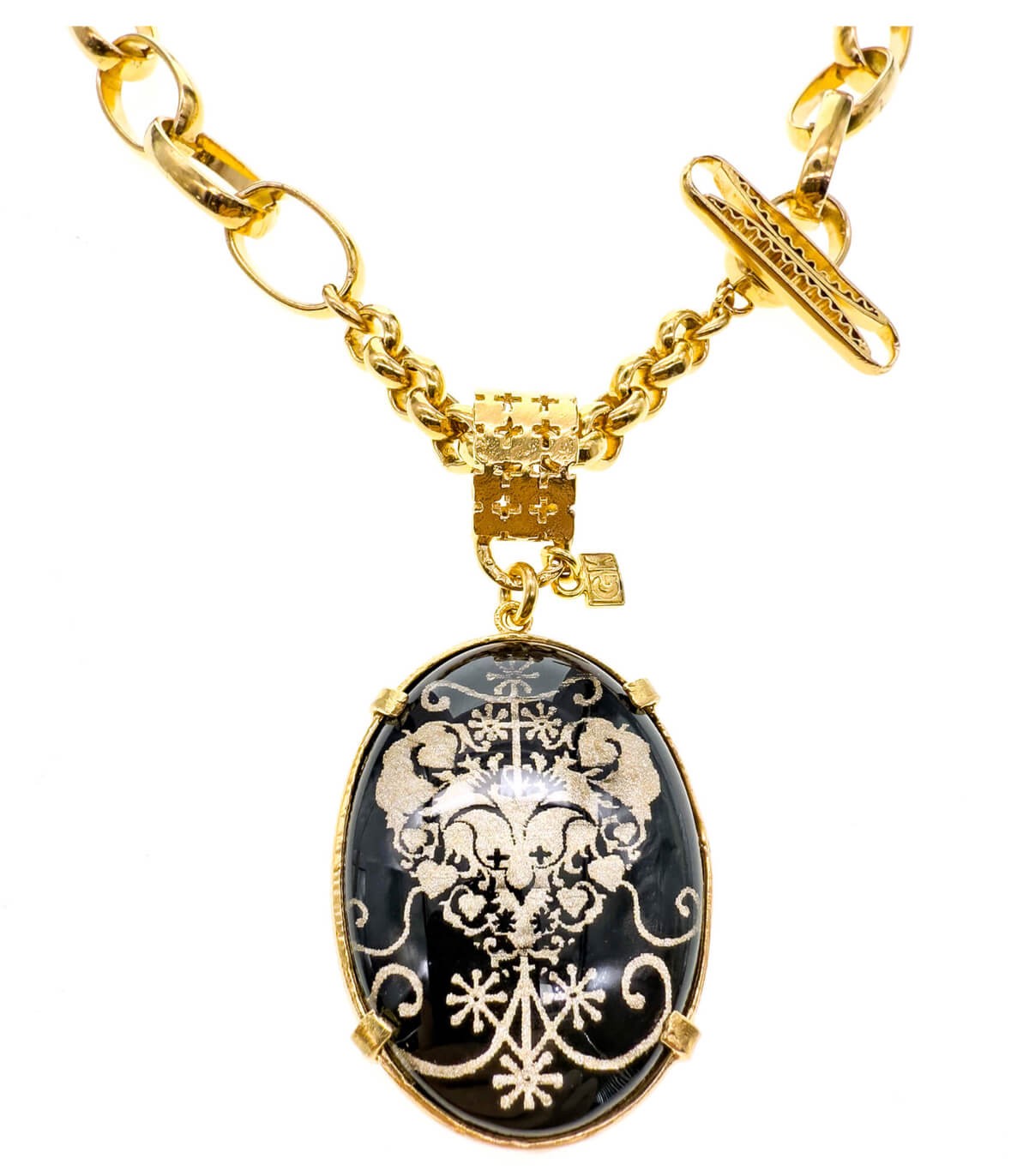 Information : collier plaqué or avec pierre intaille, 46 cm