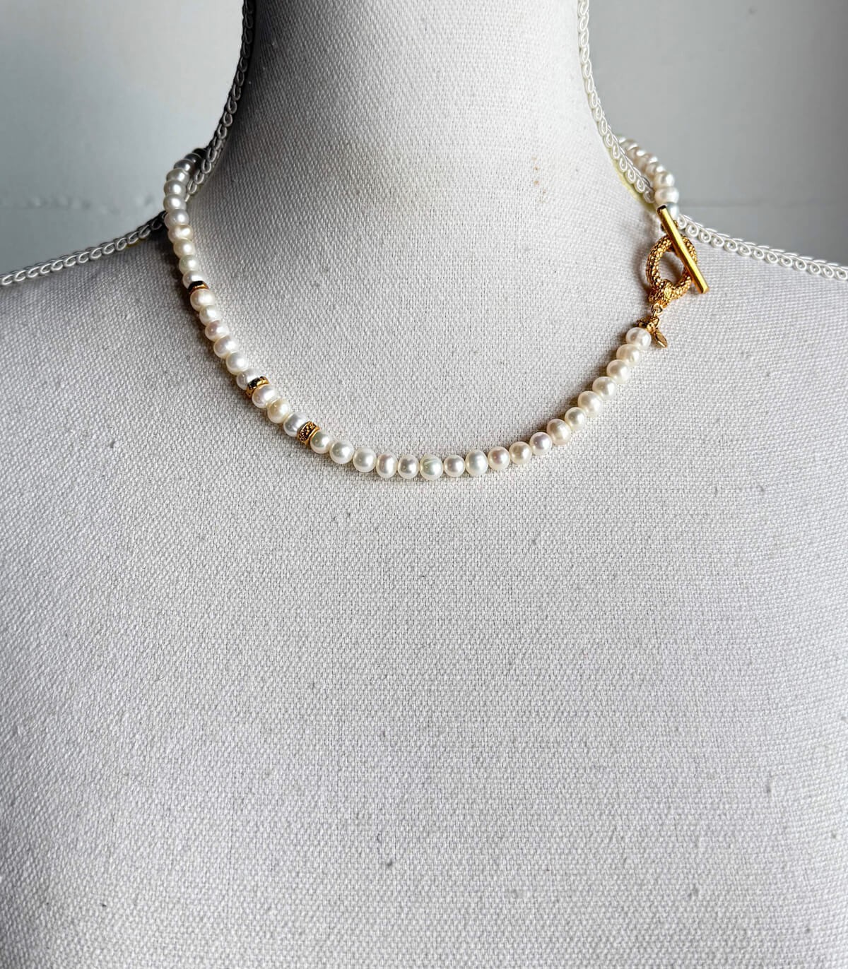 Information : collier plaqué or avec perles, 50 cm