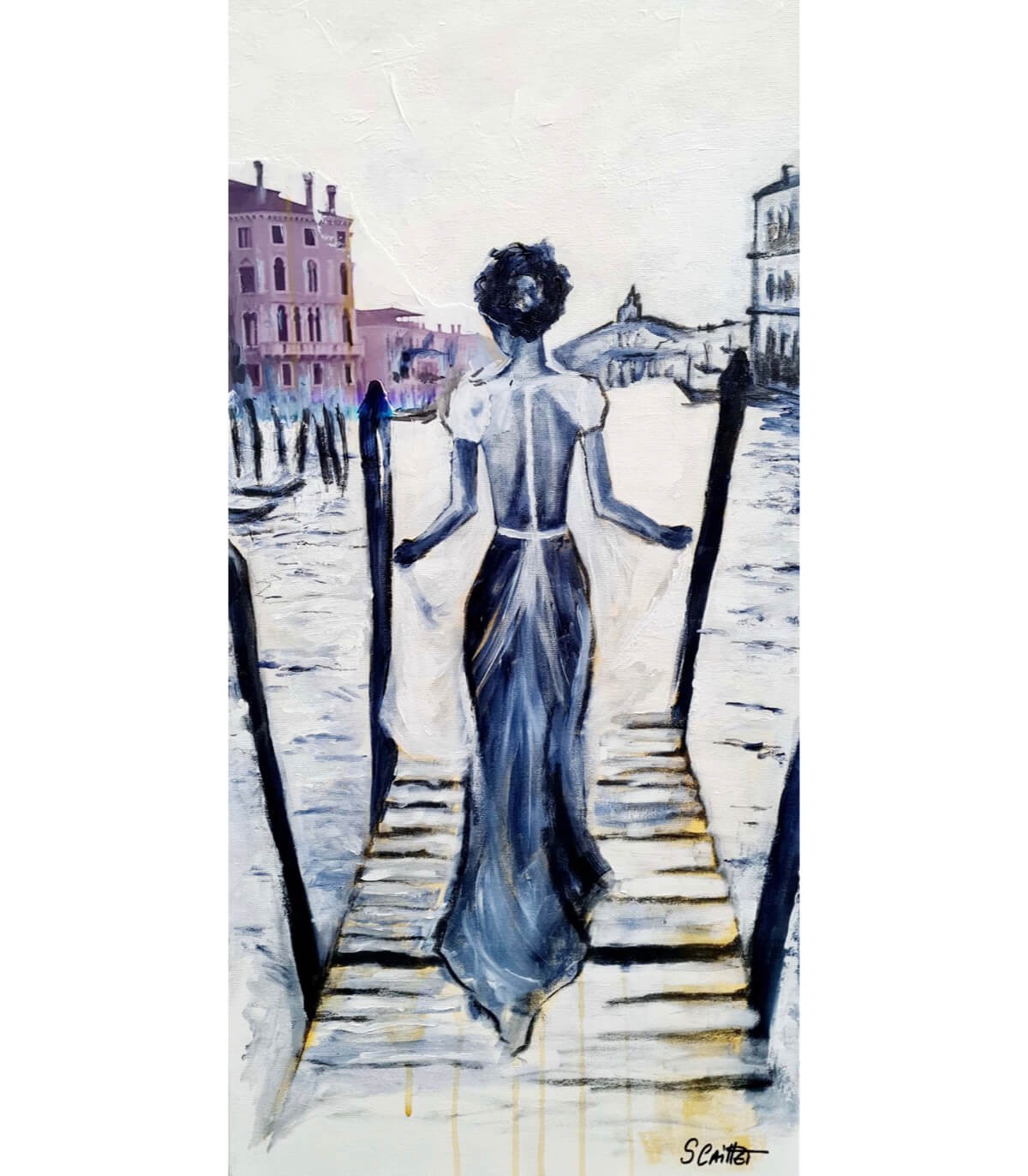 Stéphanie Caillet a développé très tôt un goût prononcé pour l’art et l'apprentissage de techniques grâce aux pastels et la peinture à l'huile au sein d’une académie de peinture. S’en suivent des études artistiques à l’École des Beaux-Arts de Versailles, puis à l’Université Paris 8 de Saint-Denis en Arts Plastiques, où elle était élève de l’Artiste Américaine Judith Wolfe. Ces apprentissages lui permettent aujourd’hui d’avoir des références comme Ingres, Vuillard, Matisse ou encore Mitchell et Hockney. Travaillant avec de l’acrylique, du fusain et sur certaines toiles en techniques mixtes (collages, pastel gras), elle crée des portraits et des corps féminins sur grand format. Le corps de la femme comme modèle, le corps, reflet des maux de l’âme, et des portraits toujours très expressifs. Ses peintures sont empreintes d’elle-même, tantôt apaisées et le regard visible, tantôt révélant d’avantage ses douleurs. Les peintures monochromes, en camaïeu, ou plus colorées sont posées avec un geste franc ou en modelés. Le figuratif côtoie les arrières plans abstraits. Stéphanie Caillet travaille la beauté de la femme, une beauté visuelle, qui cache les plaies non visibles du psychique. Le rendu est "sensuel et délicat".