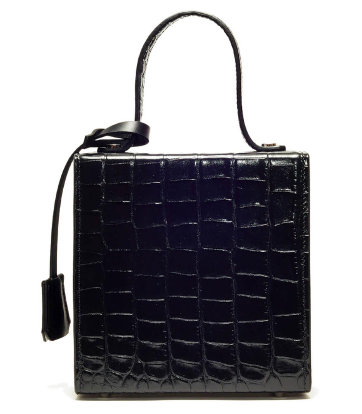 EXTÉRIEUR : 100% cuir de veau pleine fleur. Cuir de veau gaufrage manuel façon croco à l’aspect brillant et rigide. Cuir de veau Box Calf lisse et souple. Fermoir et composants métalliques de couleur argent, en laiton et zamak palladiés puis traités avec la technique de cataphorèse ce qui les rendent très résistants contre l’oxydation et l’usure dans le temps. Pour fermer le sac, maintenir le bouton mobile appuyé, pousser le rabat dans la fermeture puis relâcher. Broderie artisanale aux fils métallisés, très rigide et résistante, traitée contre les rayons UV et l’usure. Une bandoulière comprise dans le prix du sac, au choix entre la bandoulière en cuir de veau Box Calf amovible et ajustable et ses composants métalliques en laiton et zamak palladiés OU la bandoulière en cuir et sa chaine en laiton palladiée amovible et non ajustable. Possibilité de rajouter les deux, le prix change en fonction du choix. Porte clé en cuir de veau Box Calf avec logo embossé