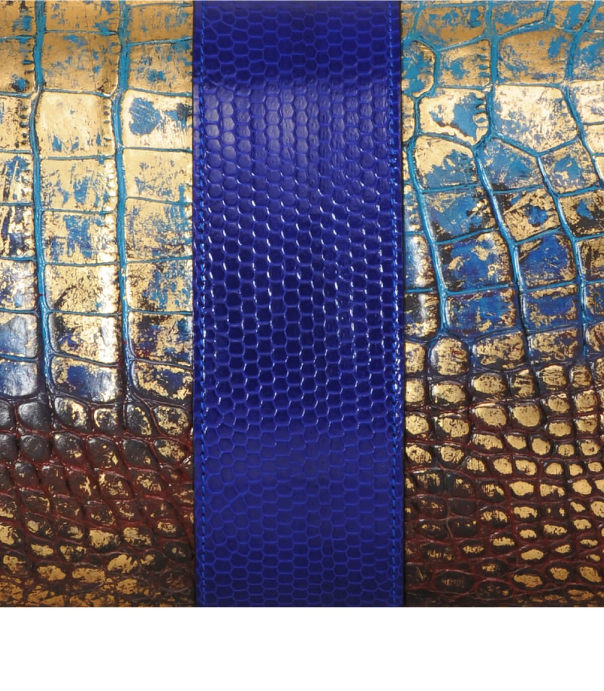 • Information : sac à main en trois cuirs différents : cuirs Italiens de veau pleine fleur gaufré à la main style croco puis embelli par une technique authentique de la marque ; Box Calf pleine fleur lisse de couleur noir, et cuir exotique de serpent upcyclé. Tous les bords du sacs sont des bords francs lissés à la main, teinture de tranche de couleur noire. Fermoir et composants Italiens en laiton et zamak plaqués palladium. Dorure manuelle à l'or 23,75 carats sur le logo, les coins du rabat et les petits rivets. Bandoulière amovible en laiton massif plaquée or 18 carats. Sac fait main par (plus de 50 heures pour réaliser une pièce), la créatrice Elena Kitanova dans son atelier Parisien. Les nuances de couleur sur chaque peau sont différentes, ce qui rend chaque sac unique. NUMÉRO UNIQUE : AGL002