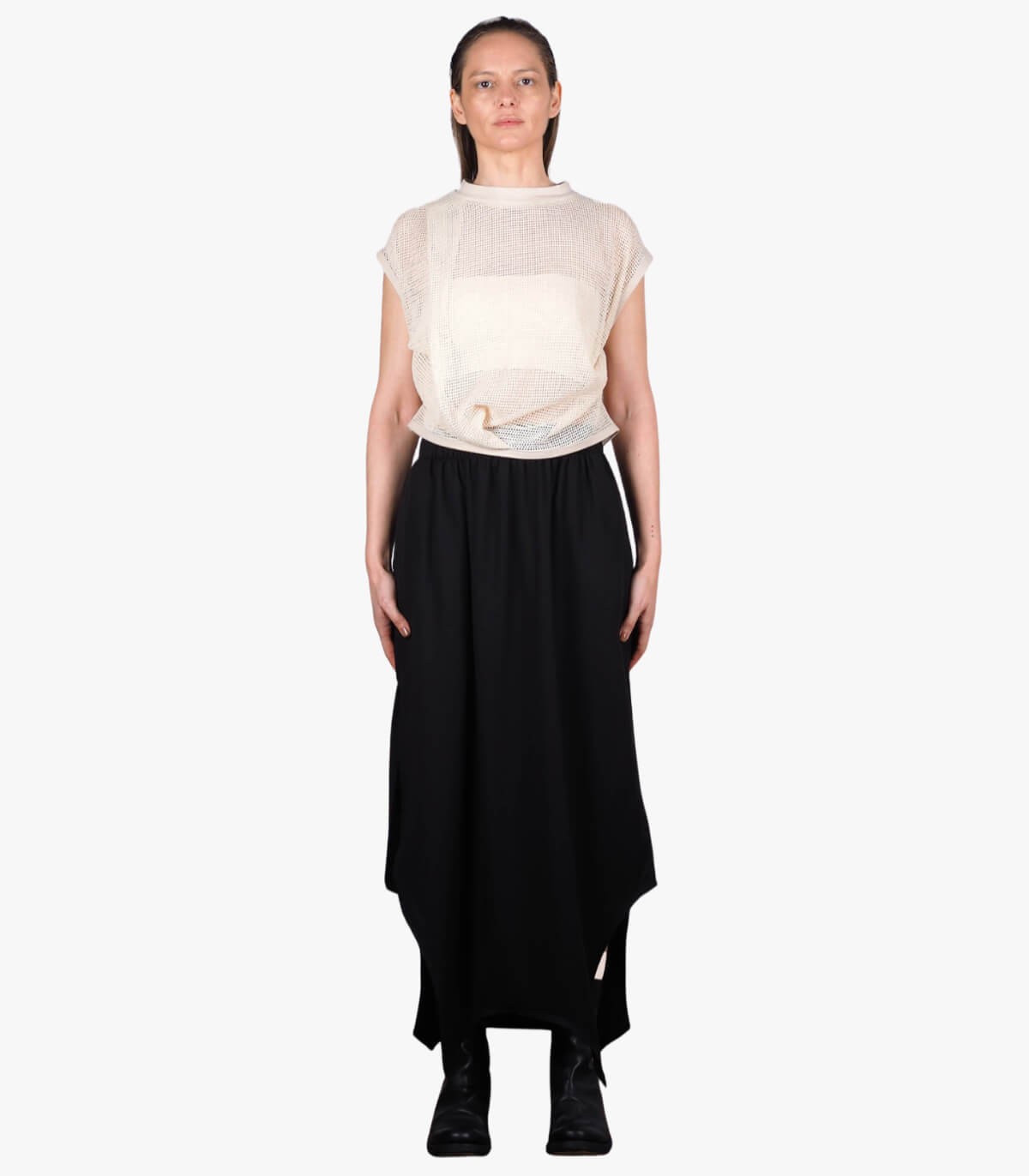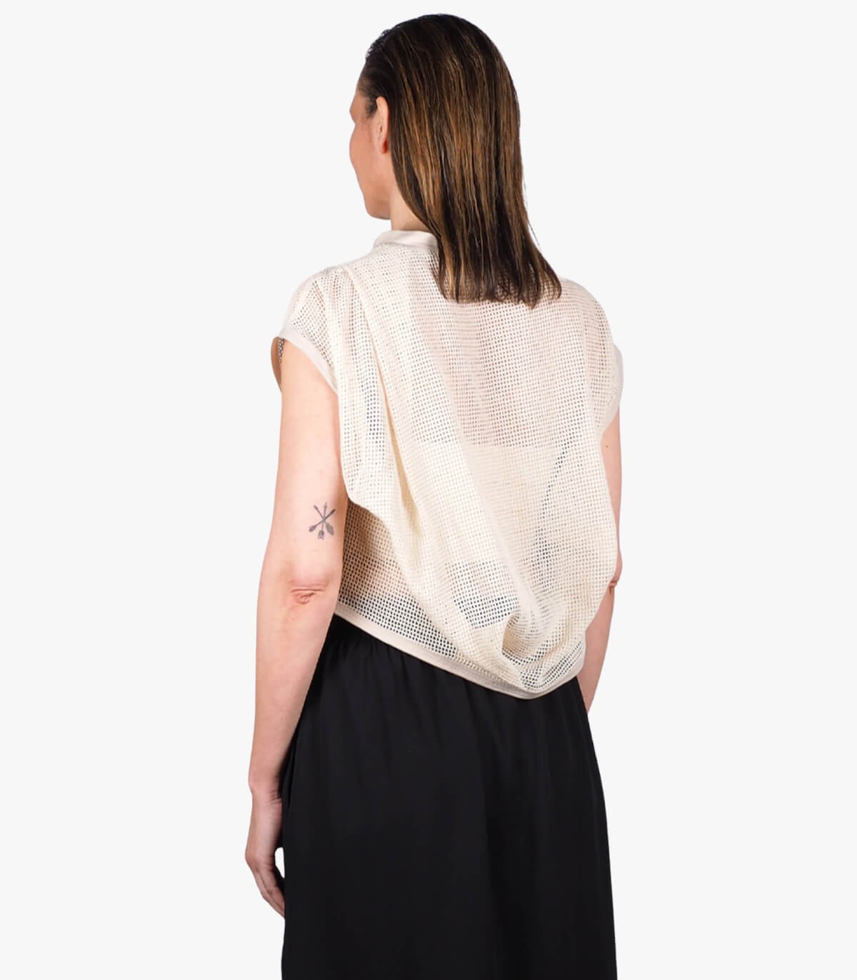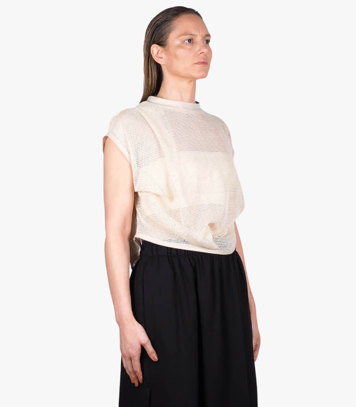 Information : top AZABACHE en résille à la taille. Ce top ample arrive à la taille. Col rond. Il présente des plis sur le devant et le dos, est sans manches et orné de surpiqûres aux ourlets. Ce vêtement est confectionné en résille de coton légère