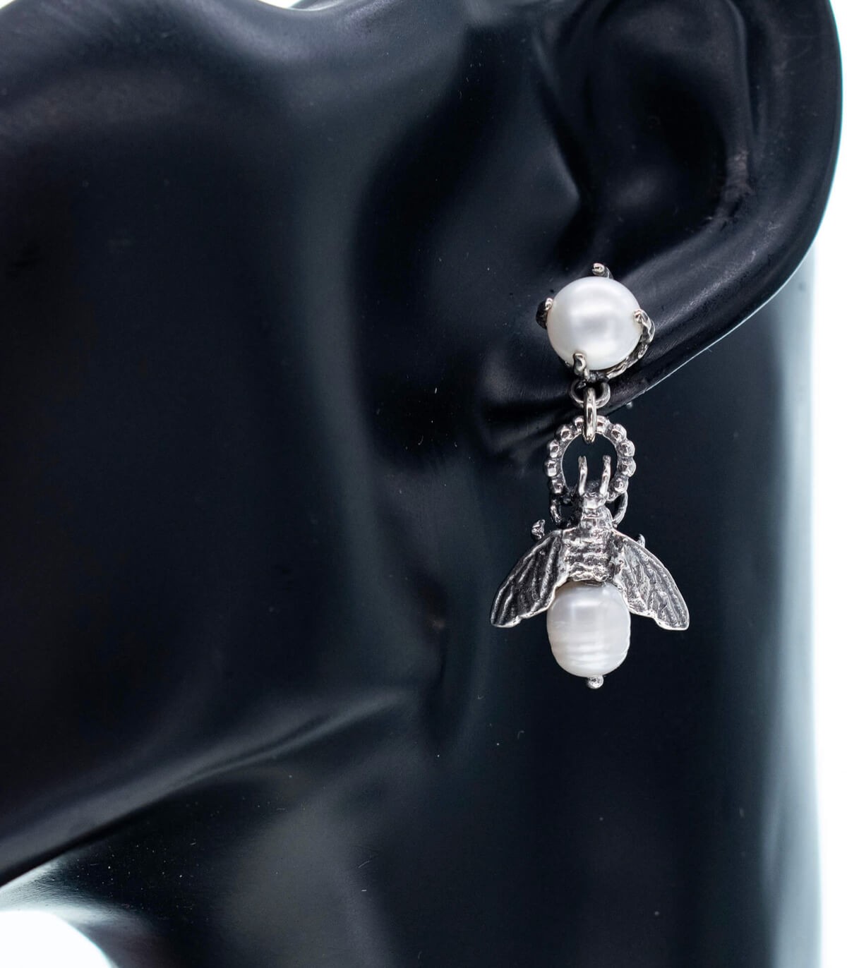 素材 : スターリングシルバーにホワイトパールをあしらったデザイン