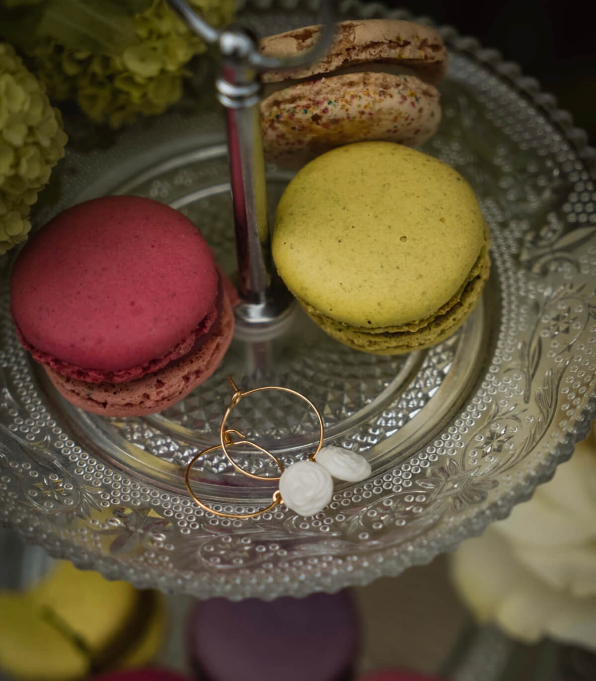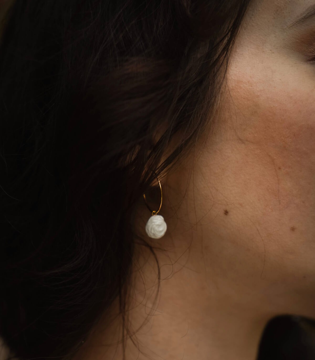 • 情報 : エレガントでロマンティックなローズフープピアス。グレーズ仕上げの磁器パーツ2つとフープで構成されています。このジュエリーはすべてフランスでハンドメイドされています