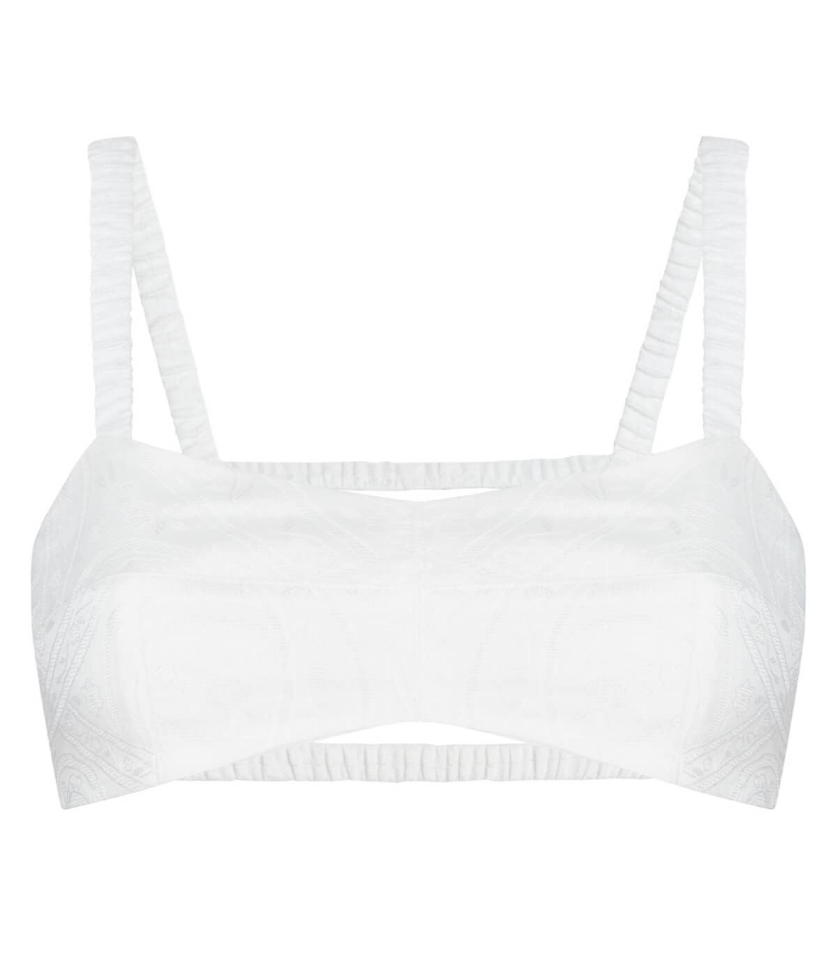 情報 : 繊細なペイズリーパターンのブラレット。単独でも、当ブランドのシグネチャー「ノンシャラントシャツ」の下に合わせて着用してもフィット
