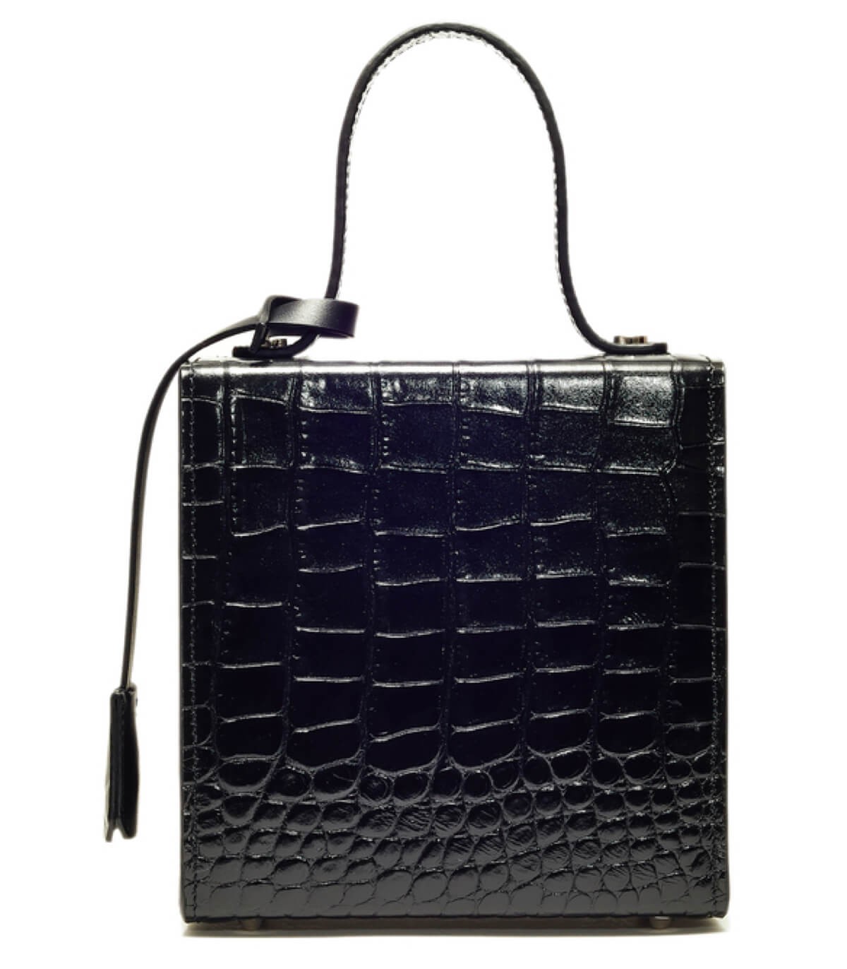 外側: フルグレイン カーフスキン レザー 100%。クロコダイル パターンを手作業でエンボス加工したカーフスキンが、光沢のある硬めの外観を実現。滑らかでしなやかなボックス カーフ レザー。シルバー トーンの留め具と金属部品はパラジウム メッキの真鍮とザマック製で、電気泳動技法で処理されているため、長期間使用しても酸化や摩耗に非常に強いです。バッグを閉じるには、ボタンを押したままフラップを留め具に押し込んでから放します。金属糸で手刺繍されており、非常に硬く耐久性があり、紫外線や摩耗に強い加工が施されています。ショルダー ストラップはバッグの価格に含まれています。パラジウム メッキの真鍮とザマックの金属部品が付いた取り外し可能で調節可能なボックス カーフ レザー ストラップ、または取り外し可能で調節不可能なパラジウム メッキの真鍮チェーンが付いたレザー ストラップからお選びいただけます。両方を追加することもできますが、価格がそれに応じて異なります。エンボスロゴ入りボックスカーフレザーキーホルダー